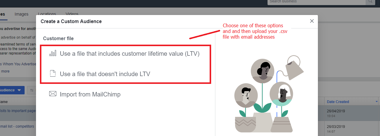 Create a custom audience based on email addresses