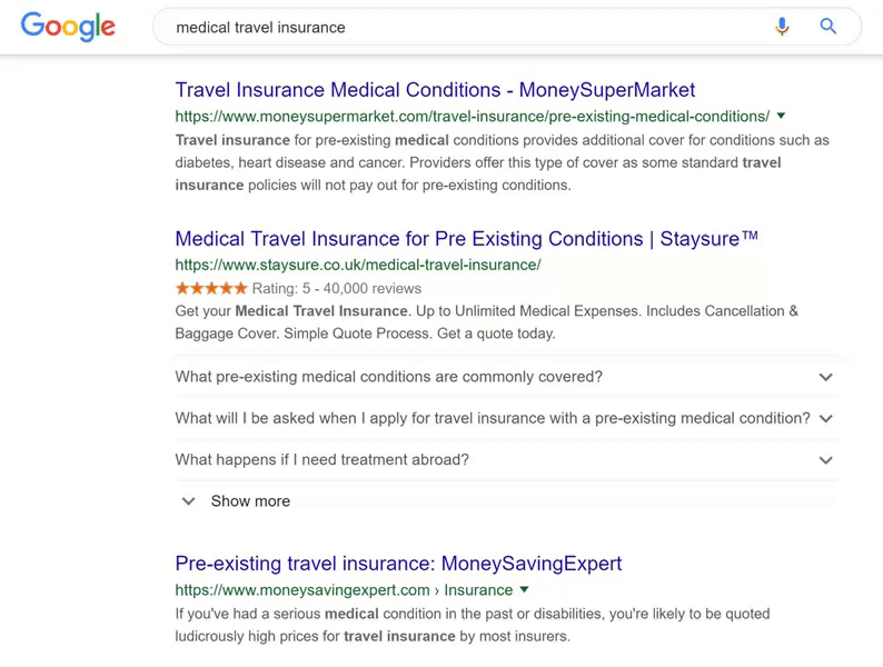 “Medical Travel Insurance” - 8,000+ avg. searches per month.