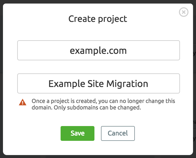 Set up tracking for all the keywords on your keyword mapping document in a SEMrush project. I recommend making a new project just for the site migration, even if you already have one set up. If you don’t want to make a new project, just make sure you set up specific tagging to ensure you can filter easily.