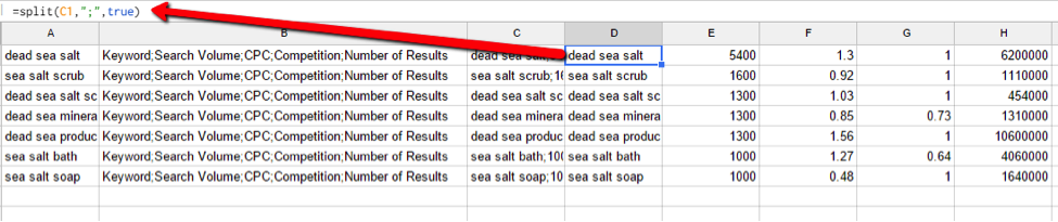 Another Google Sheets function that you may find useful for working with your data is Split. An easy way to think about this function is that Split to Google Sheets is basically what Text to Columns is to Excel. The definition provided in Google Sheets is that this function “will help you divide text around a specified character or string and places each fragment into a separate cell in the row.”