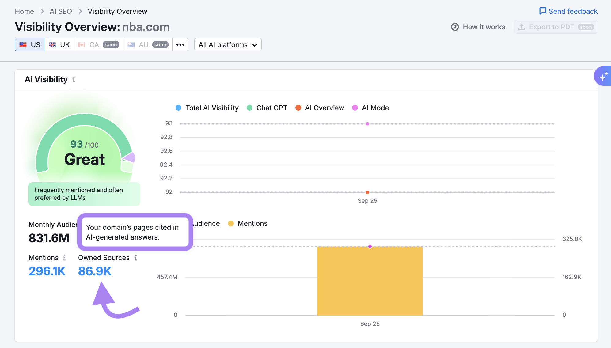 And you can check your brand's existing AI citations with the Owned Sources metric in Visibility Overview.