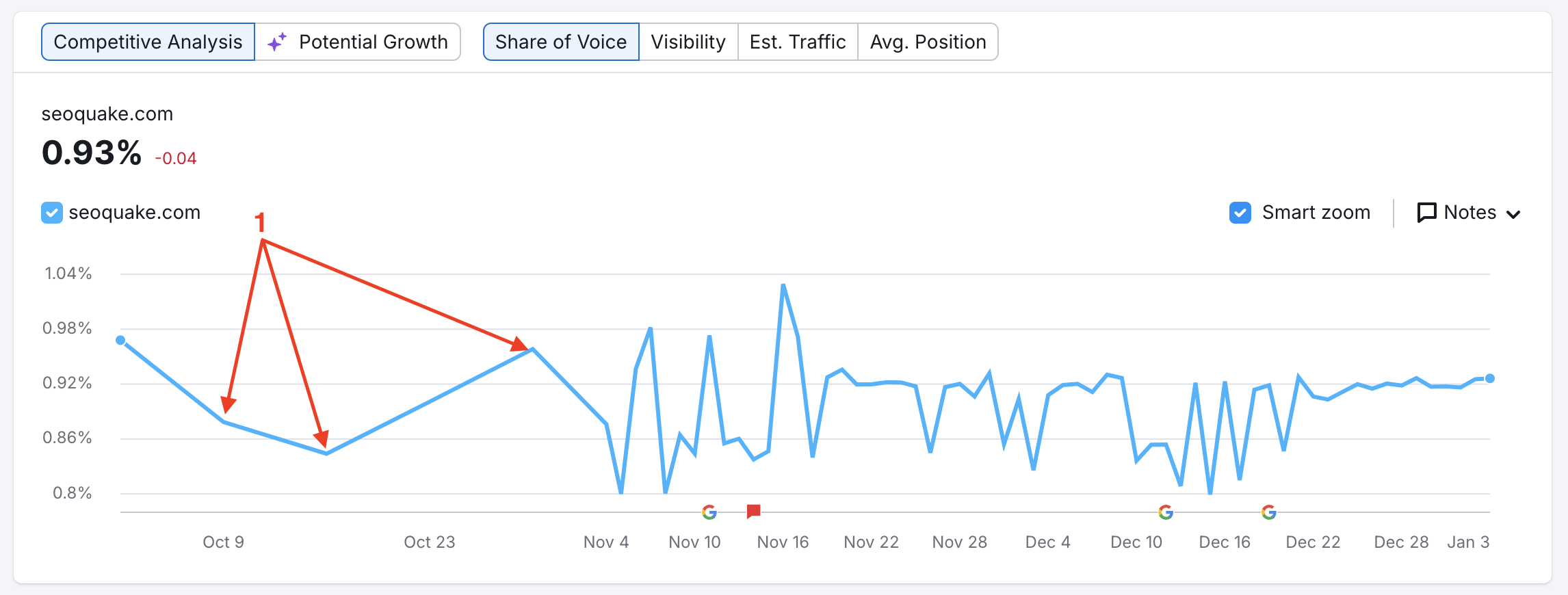We track daily results in Position Tracking for 60 days. After 60 days we display information using weekly points (1) and by default, those are on Wednesdays. We keep this weekly information for 140 weeks.